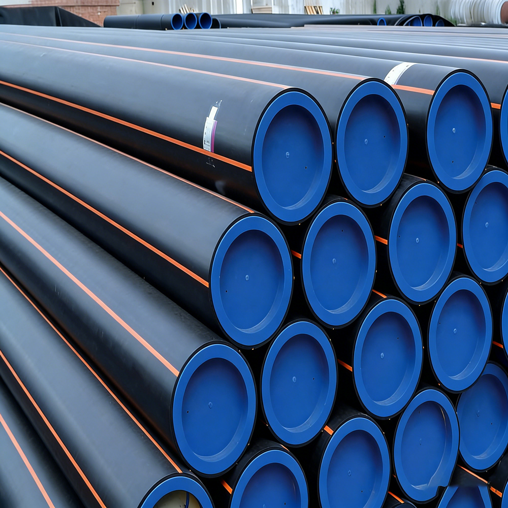 20世纪90年代至今,在PE80级HDPE管道基础上进一步提高了最小要求强度(MRS)和抗应力开裂性能,其最小要求强度(MRS)为10.0Mpa的PE100级原料,主要应用于城市供水管道和城市燃气管道。燃气用PE管材是以PE树脂为主要原料,加入适量助剂,经混合、挤出、定径、在线超声波测厚、冷却、切割等工艺加工成型。公司的燃气用PE管材是采用德国进口挤出设备生产的,产品质量符合或高于国标GB/T 15558.1-2015,适用于城镇燃气管道工程。